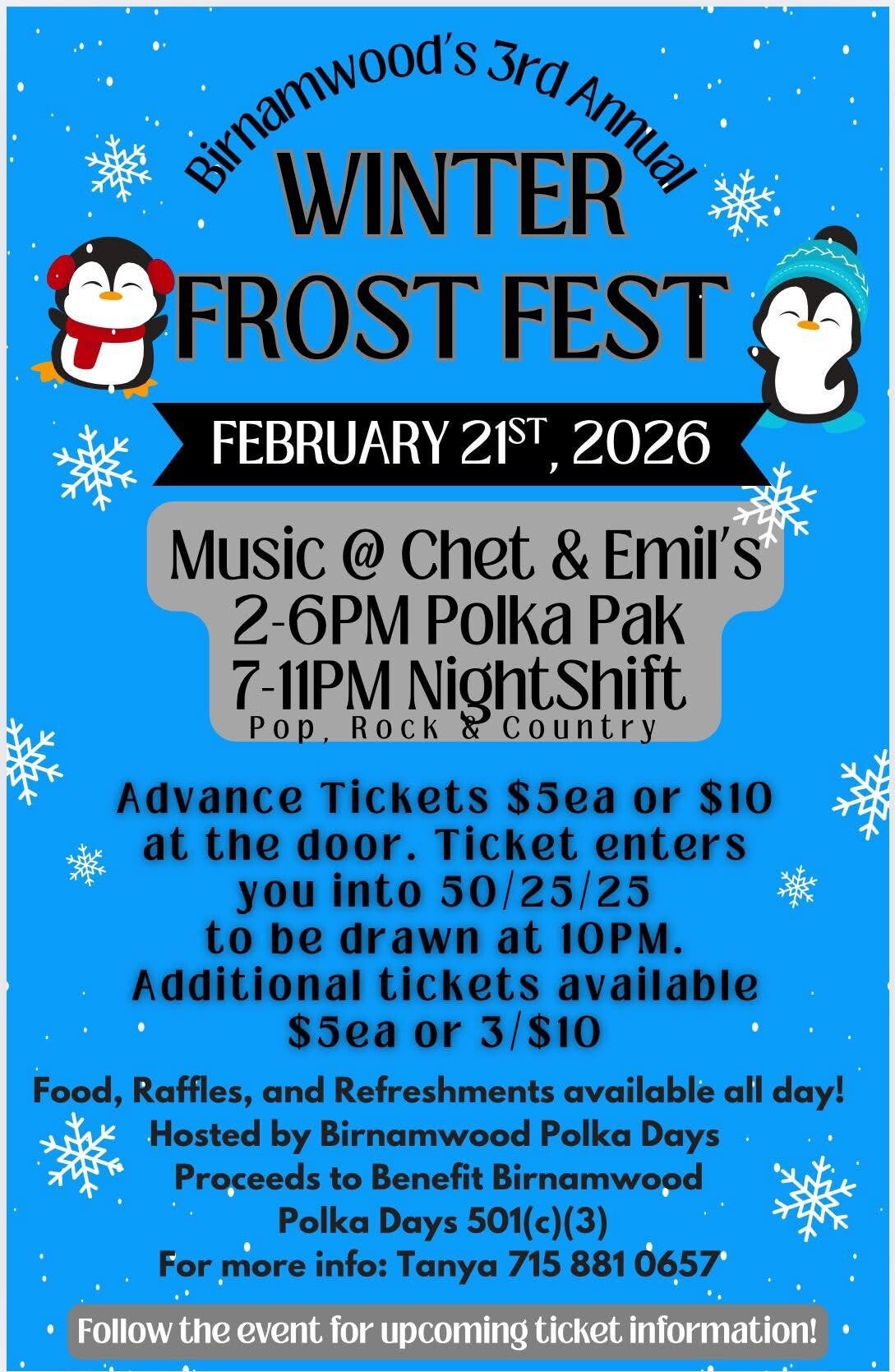 Join us to warm things up this winter! Kickoff the afternoon with The Polka Pak Band from 2-6PM, and then rock the night away with Night Shift from 7-11PM.
